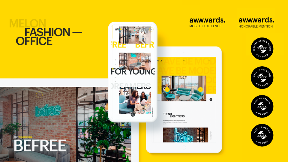 Разработать спецпроект: сайт-экскурсию по штаб-квартире Melon Fashion Group и офисам BeFree, Zarina, Love Republic, Sella.